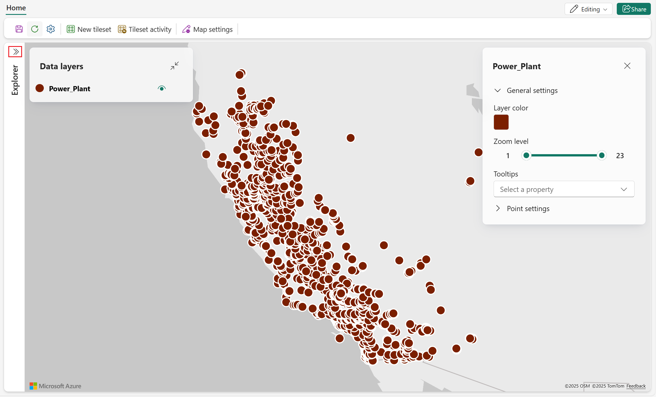 การเปลี่ยนแปลงจะนําไปใช้กับพื้นที่ทํางานแผนที่ทันที สําหรับข้อมูลเพิ่มเติมเกี่ยวกับการตั้งค่าเลเยอร์ โปรดดู กําหนดแผนที่เอง