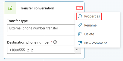 กำหนดค่าส่วนหัว X ในคุณสมบัติของโหนดการถ่ายโอนการสนทนา