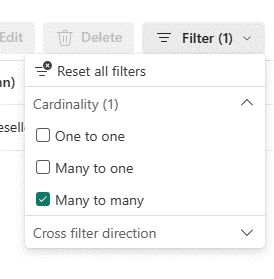 นอกจากนี้ คุณมีตัวเลือกในการกรองและมุ่งเน้นไปที่ความสัมพันธ์เฉพาะในแบบจําลองของคุณโดยยึดตามคาร์ดินาลลิตี้และทิศทางตัวกรองข้าม
