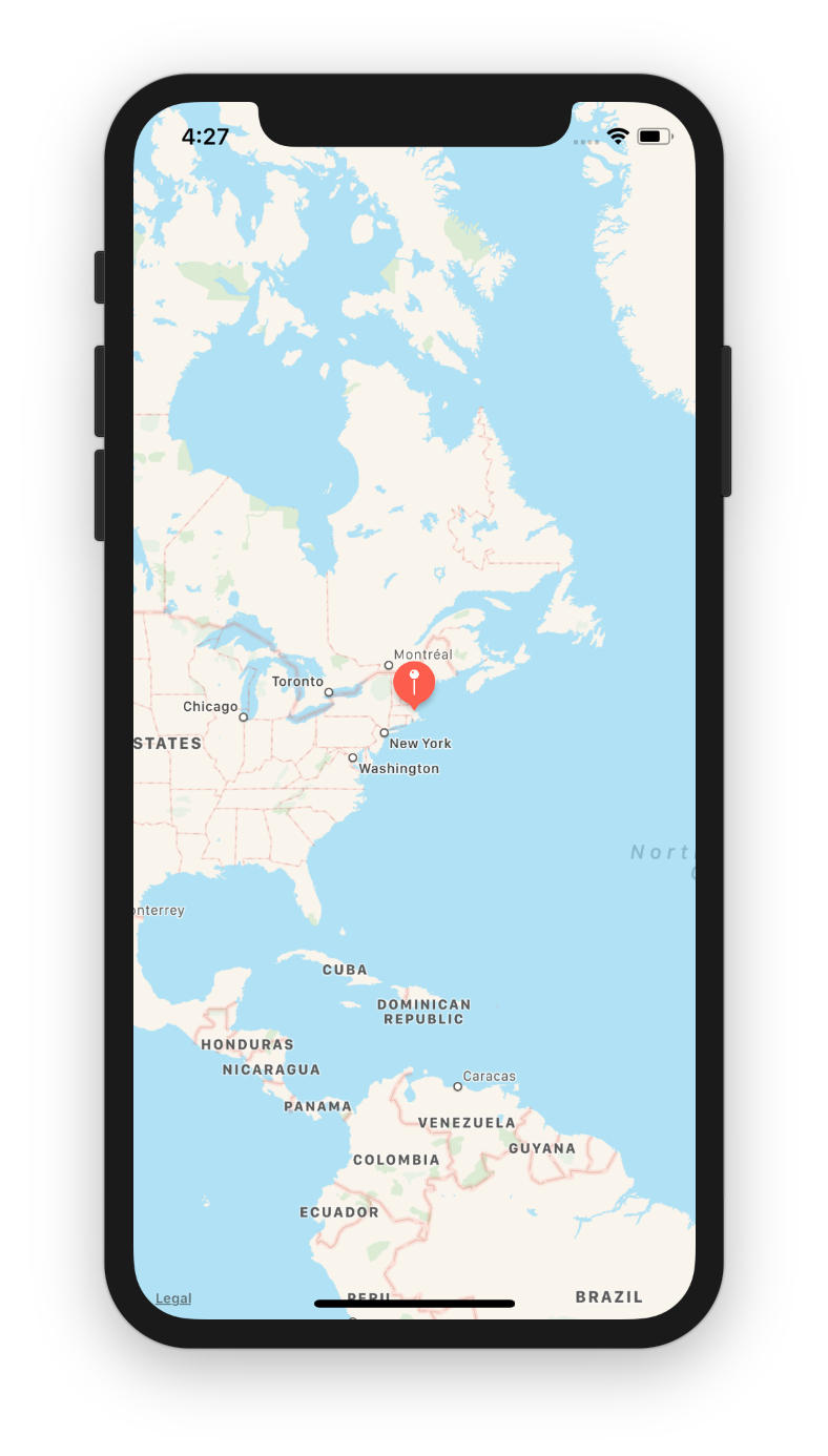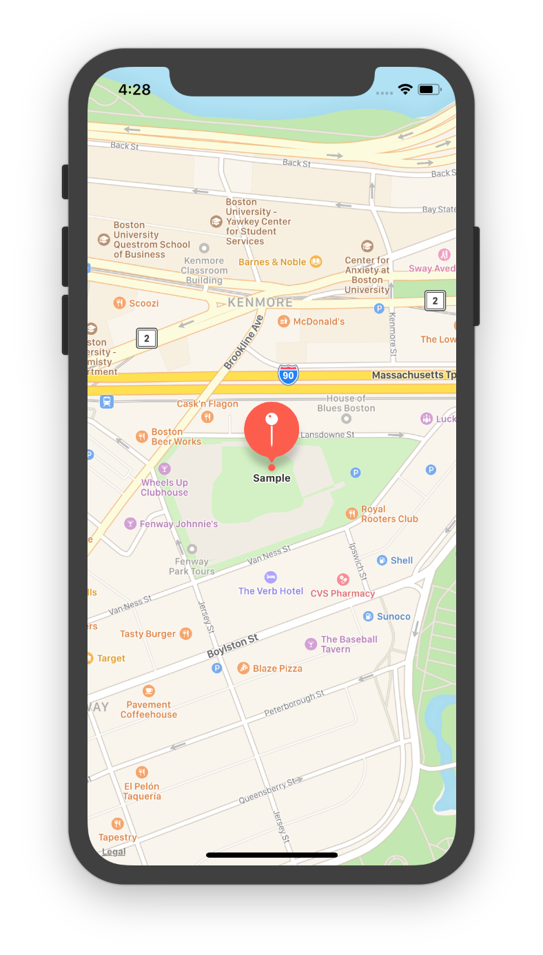 To illustrate protocols and delegates, we’ll build a simple map application that adds an annotation to a map as shown here: