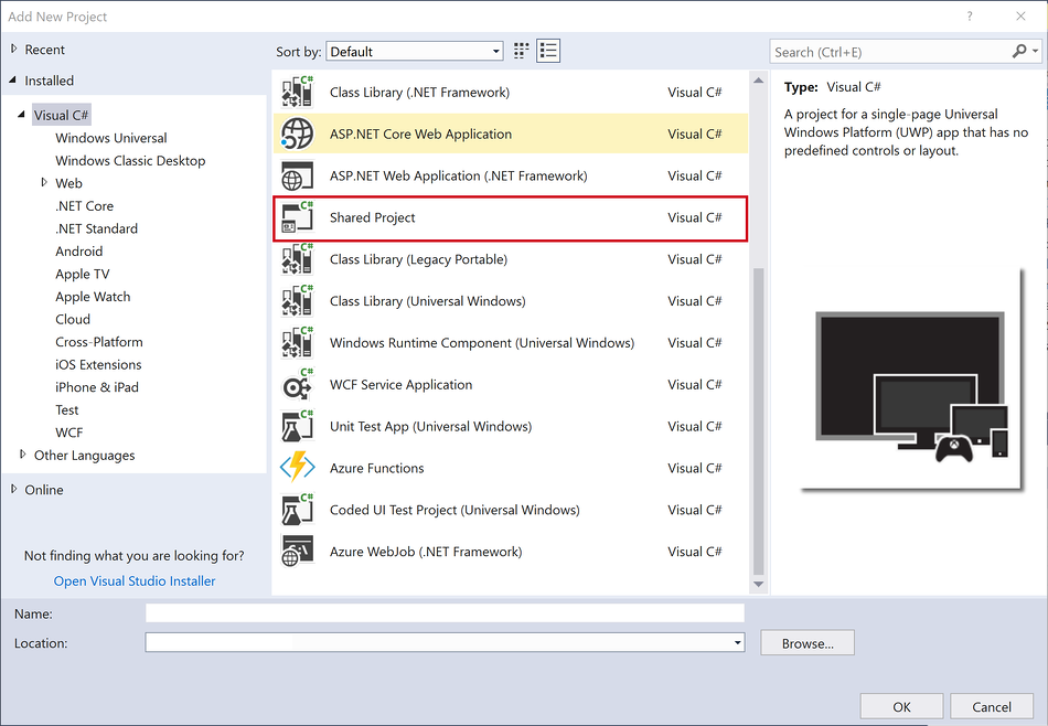 MonkeyChatCommonfor the Name and click the Create button:Right-click on the References folder of the main app in the Solution Explorer and select Edit References.... Check the MonkeyChatCommon project and click the OK button: