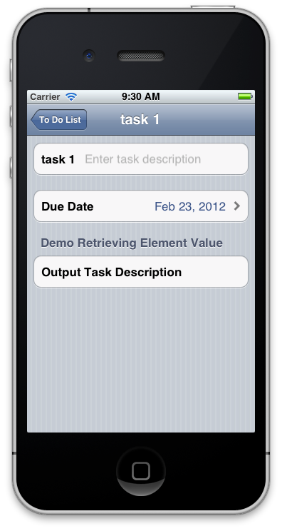 var element = new EntryElement (task.Name, "Enter task description", task.Description);