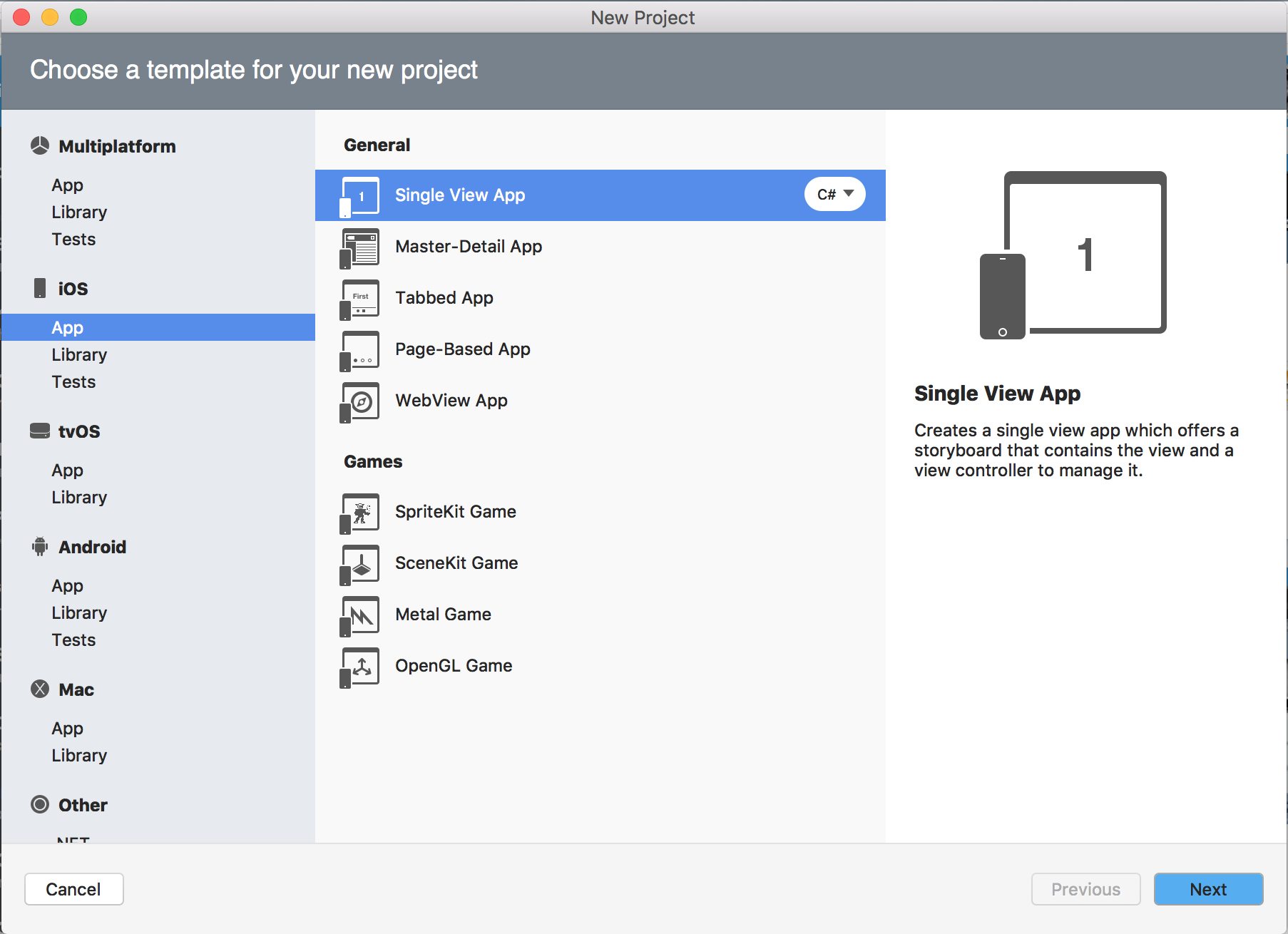 Visual Studio for Mac automatically configures project references and Info.plist settings for you.