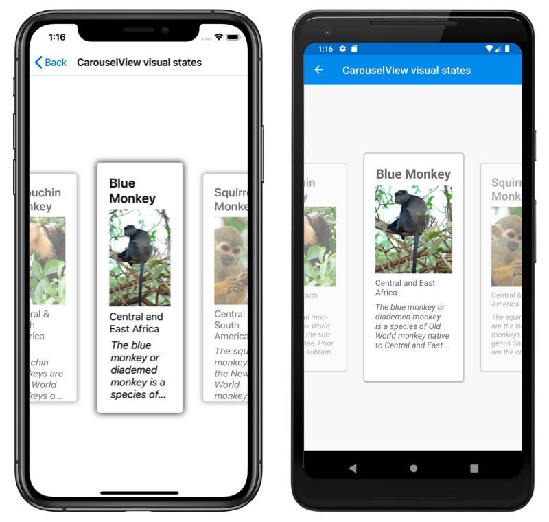 <CarouselView ItemsSource="{Binding Monkeys}"