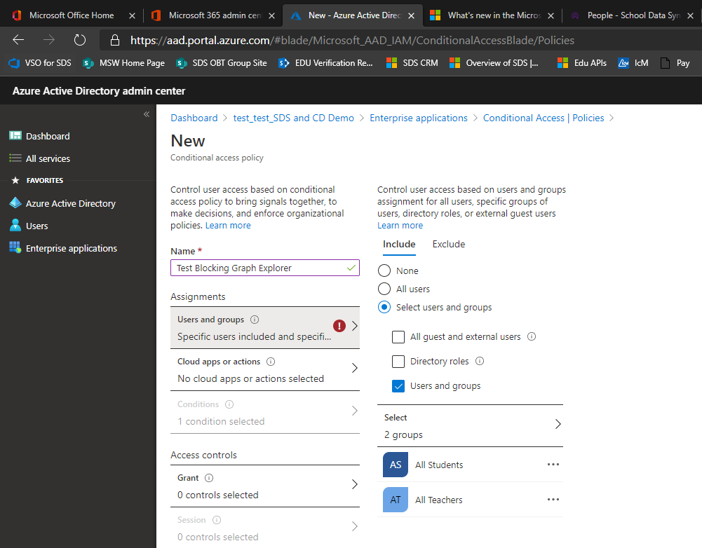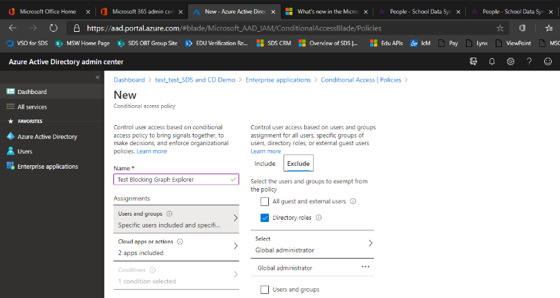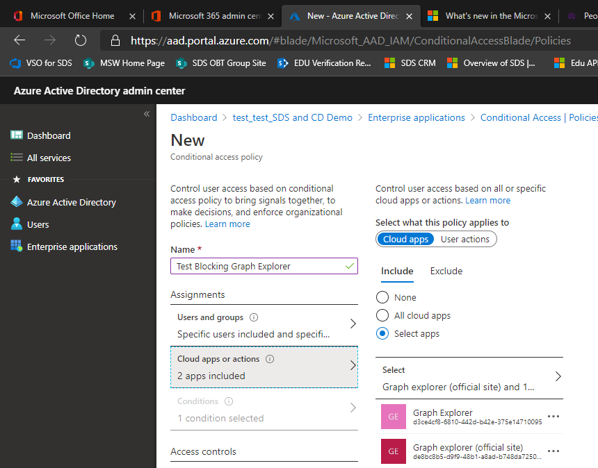 To block MS Graph Explorer for targeted users, follow the instructions to set up Conditional Access Policy.