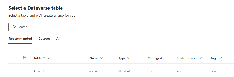 When you select Dataverse, you need to specify one or more tables that contains the data that you want to include.