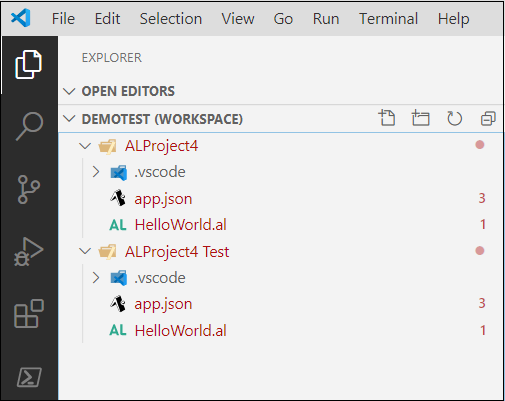In the next example, we have created an extension ALProject4 and a corresponding ALProject4 Test application.