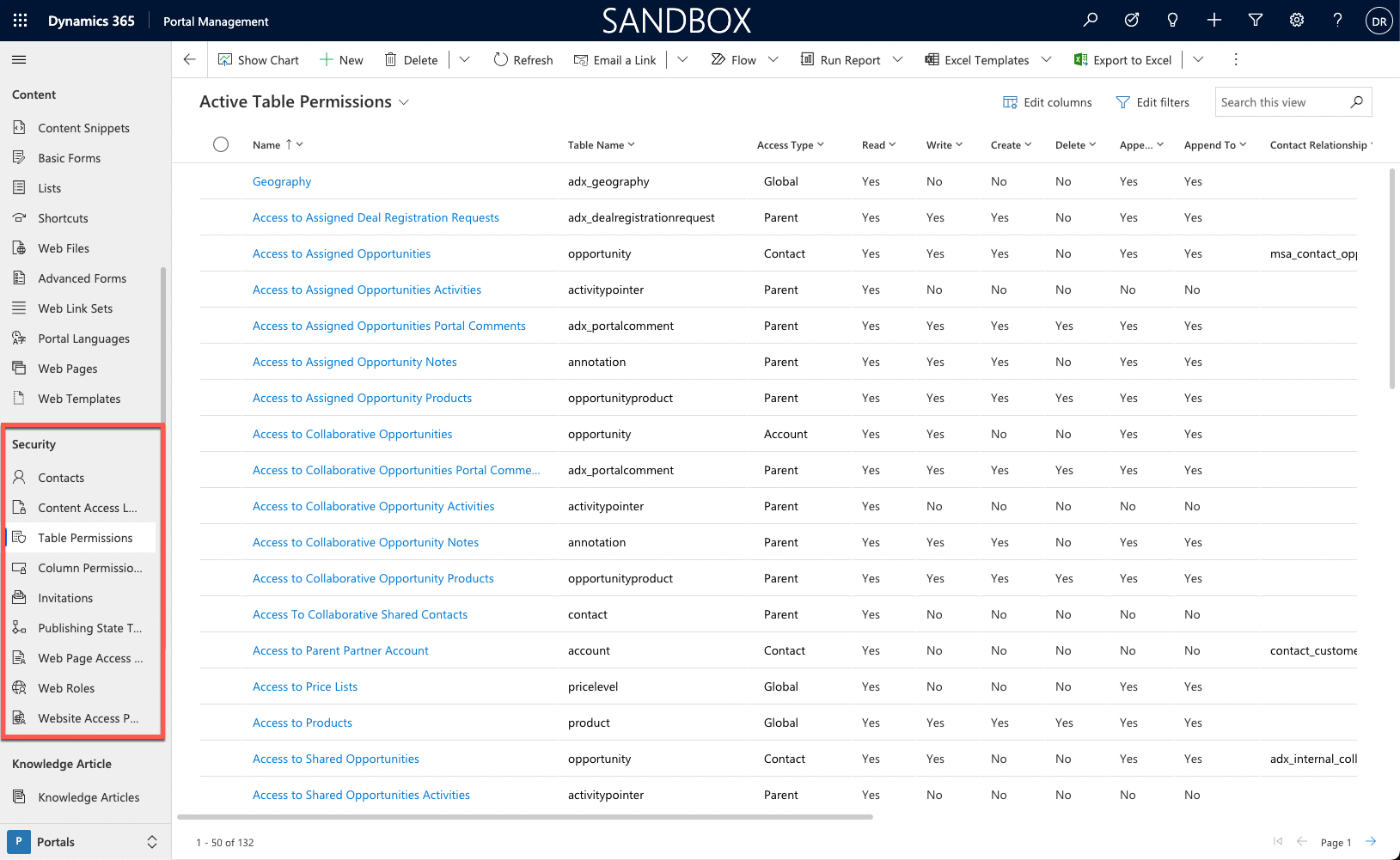 | Column Permissions | Table permissions are used to help secure individual Dataverse table rows. Column permissions extend security to individual table columns. Column permissions are currently only applicable for portal Web API features. |