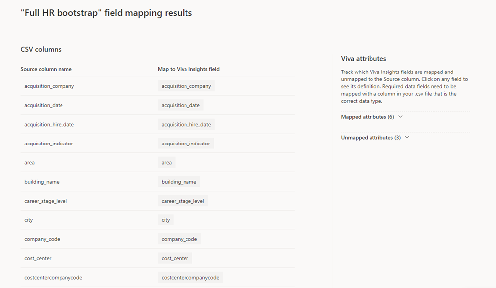 Follow the steps below to map your .csv data to Viva Insights attributes.