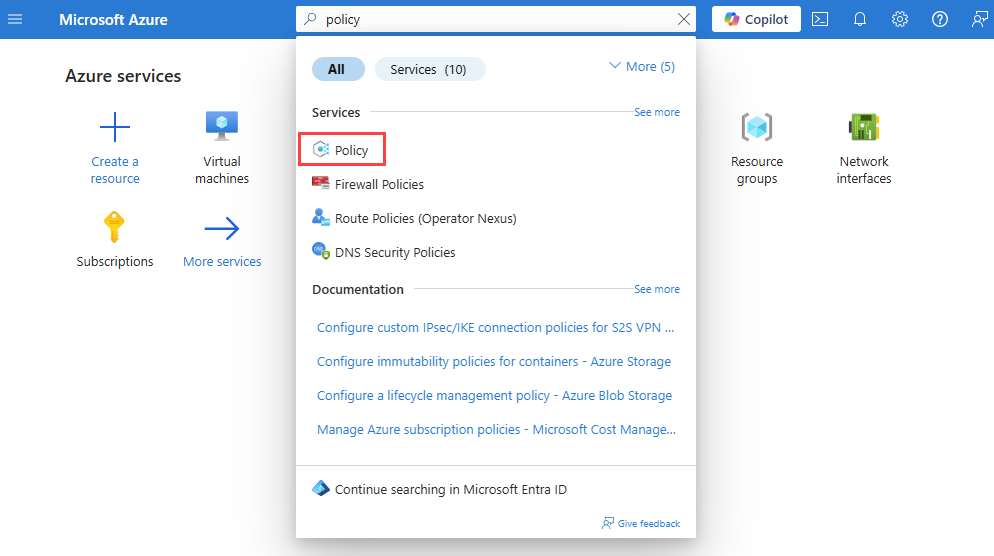 Portalın üst kısmındaki arama kutusuna politika girin. Arama sonuçlarından Politika'yı seçin.