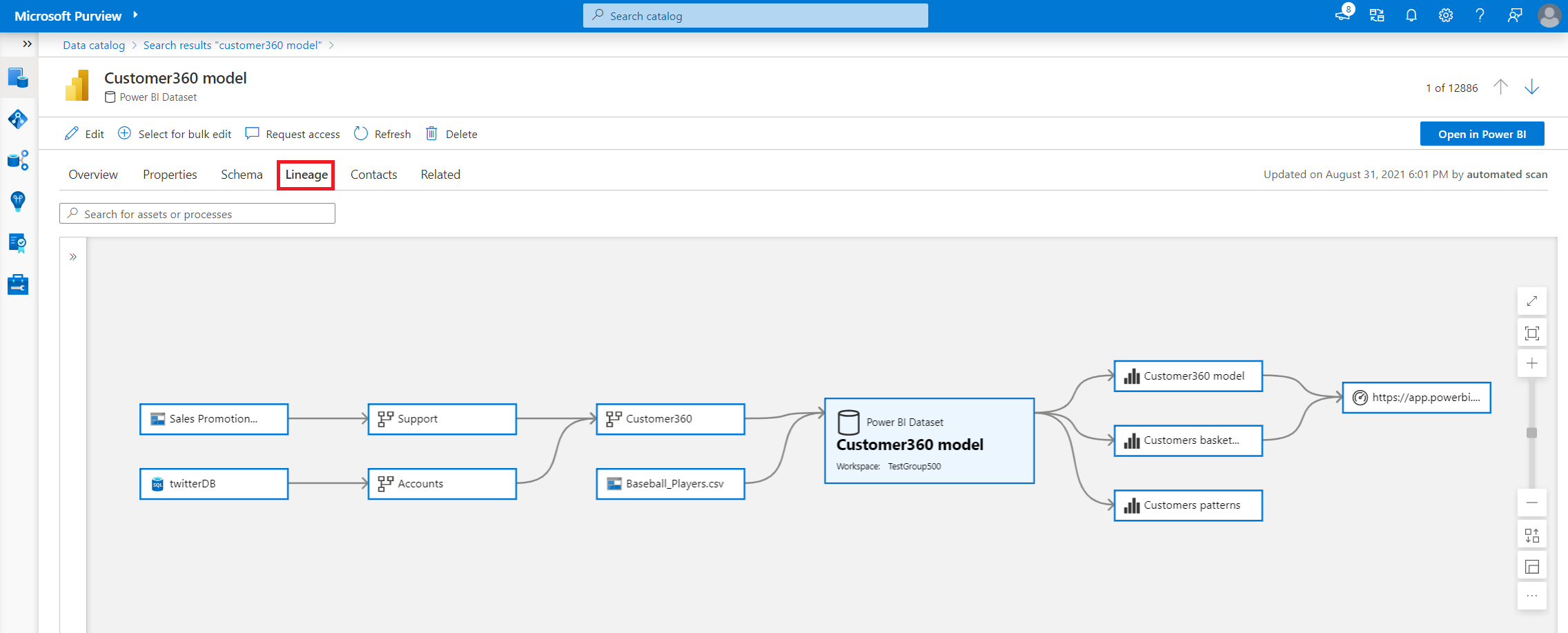 Lineage experience in the classic Data Catalog