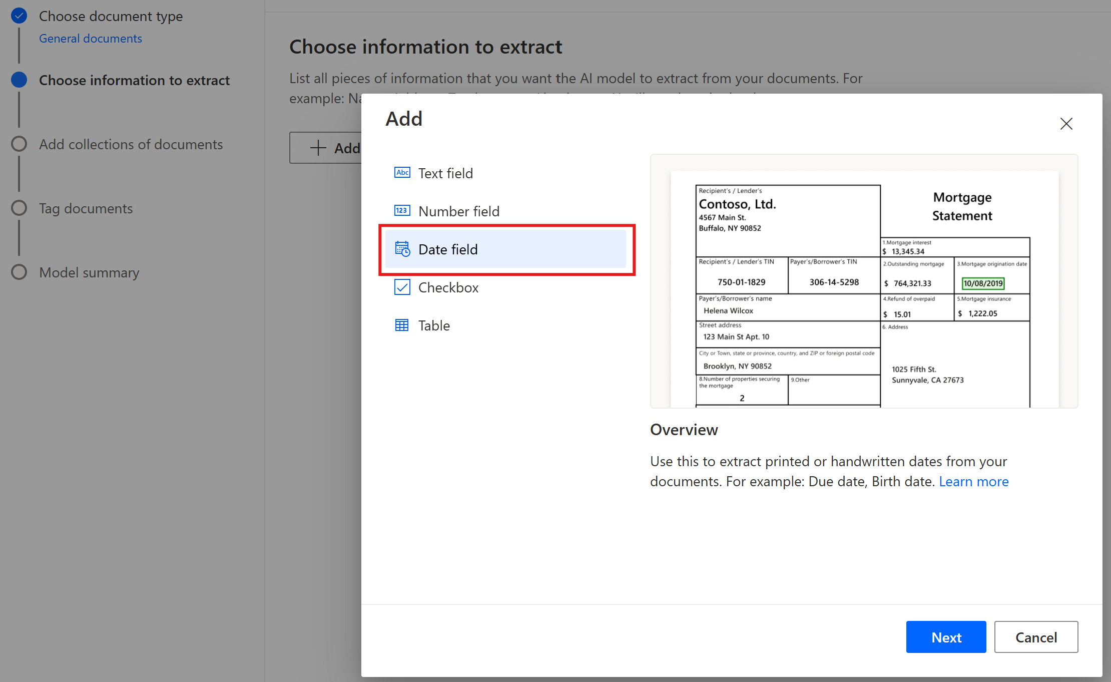 Sihirbazın alan oluşturma adımı sırasında bu türü bildirme yeteneğini ve bir tarih veya sayı kuralı (yerel ayara eşdeğer) seçme yeteneğini ekledik.