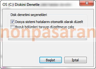 5- Artık bilgisayarınızın bir daha ki açılışında Hata denetimi gerçekleştirilecek.