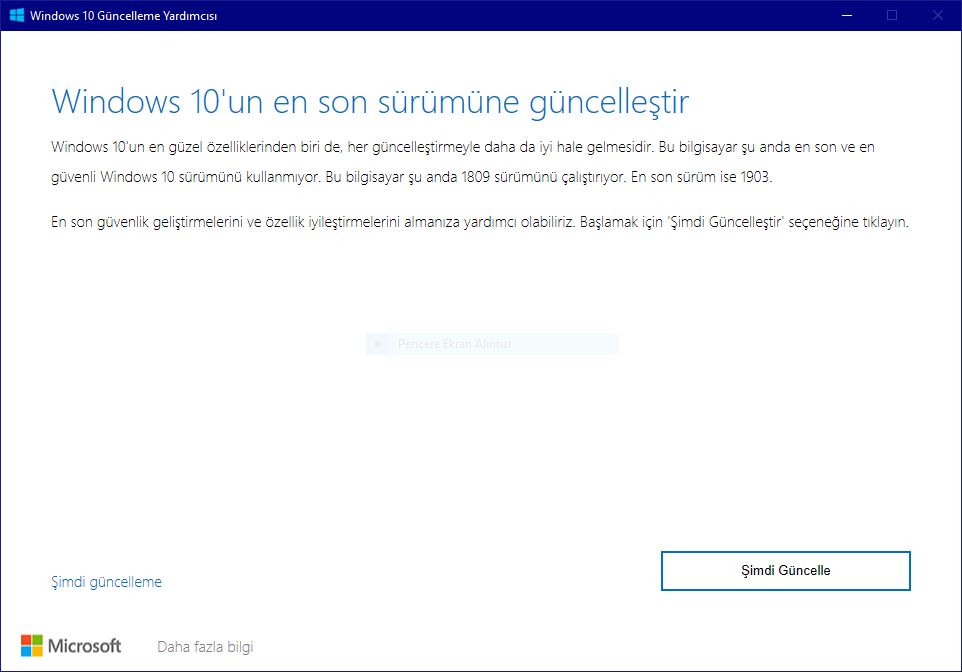 3- Windows 10 Güncelleme Yardımcısı, bilgisayarınız için en son Windows 10 sürümünü kullanıp kullanmadığınızı denetleyecek ve Windows 10 1903 güncelleştirmesini yüklemenize olanak tanıyacak.
