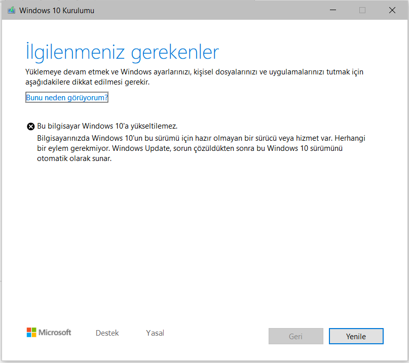 UYARI*: Windows 10 Mayıs 2019 Güncelleştirmesi'ni edinmeden önce kişiseldosya ve uygulamalarınızı****yedeklemeyi unutmayınız.*