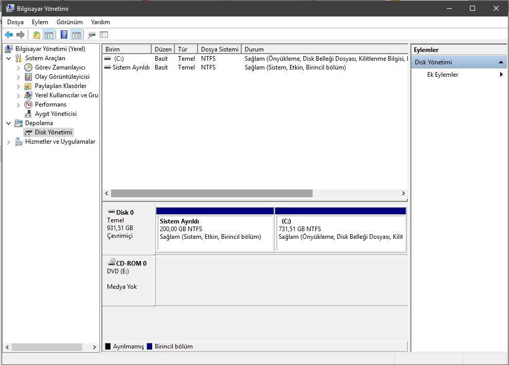 6.İşlemin bitmesini bir süre bekleyin. Alt pencerede D sürücüsü ile C sürücüsünün arasında siyah bir bölüm oluşacak.