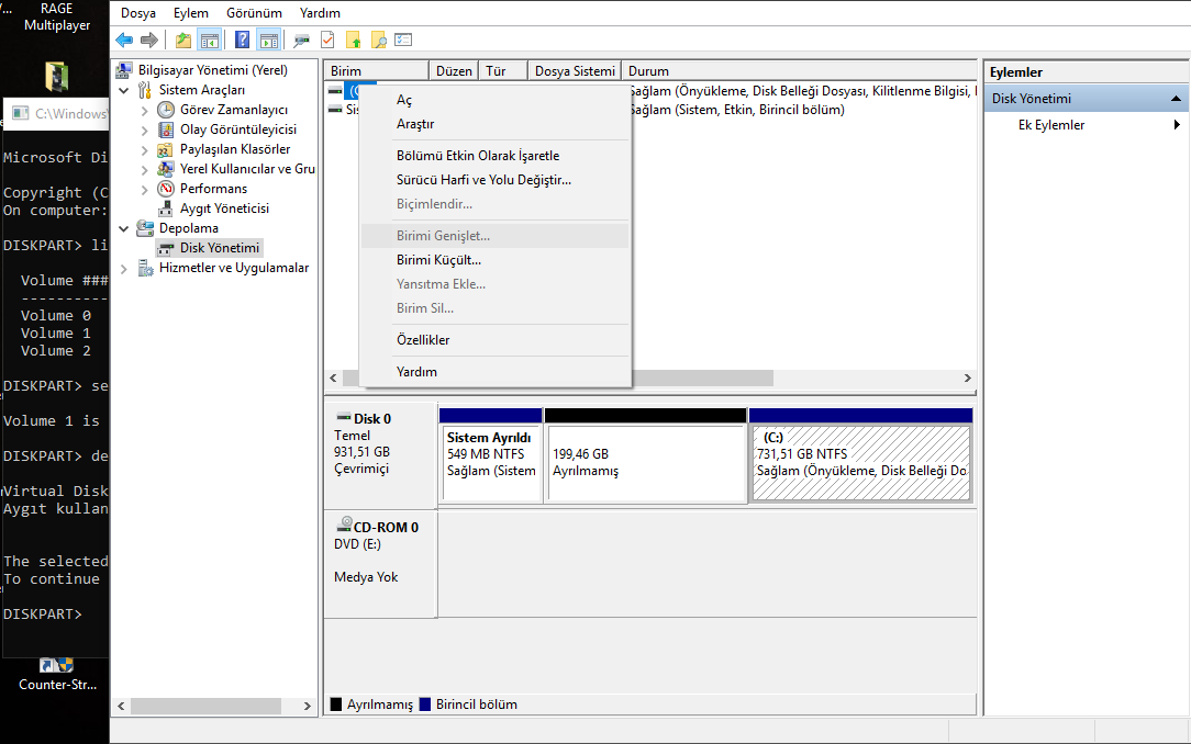 Ekran görüntülerinden anladığım kadarı ile siz diski genişletmek için diğer tarafı seçmişsiniz. Lütfen aşağıdaki adımları takip ediniz ve durumu gözlemleyiniz.