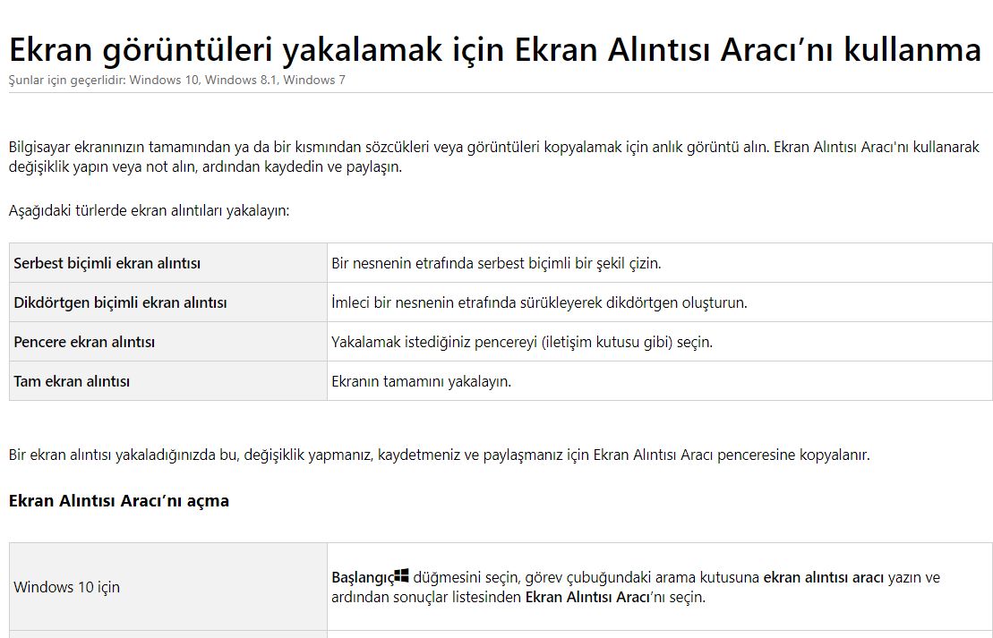 Ekran görüntüleri yakalamak için ekran alıntısı aracını kullanma