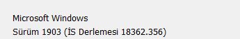 Kullandığım Windows sürümü 1903
