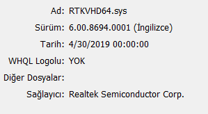 Ses sürücünüzün marka ve versiyonu nedir?