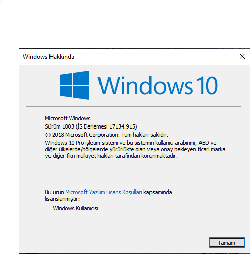 Windows versiyonunuz nedir? Başlat menüsüne winver yazarak bulabilirsiniz. Ekran görüntüsü iletmeden önce kişisel bilgilerinizi gizlemeyi unutmayınız. Ekran görüntüsü almak için bağlantıdan yararlanabilirsiniz.