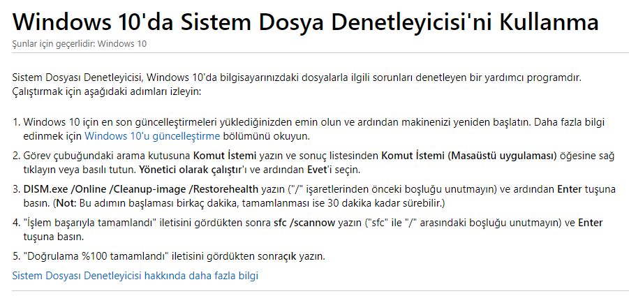 veya bilgisayarın sabit diskindeki bazı hatalardan dolayı da olabilir. Lütfen aşağıdaki adımları takip ediniz ve sorunu gözlemleyiniz.