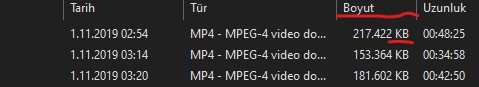 Klasöre atılan videoları; Tarih, Tür, Boyut, Uzunluk olarak (varsayılan olarak) sıralıyor Windows, malum. Ancak sorun şu ki; Boyut kısmı Klilobayt (KB) olarak görünüyor. Ben Megabayt (MB) olarak görünsün istiyorum. Mümkün müdür?