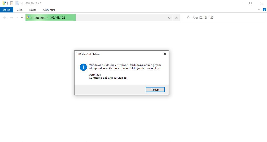 Windows 10 bilgisayarınızda FTP bağlantısı ile dosya aktarımı esnasında karşılaşmakta olduğunuz hata devam etmekteyse, konuyla ilgili olarak size yardımcı olmaya çalışacağım.