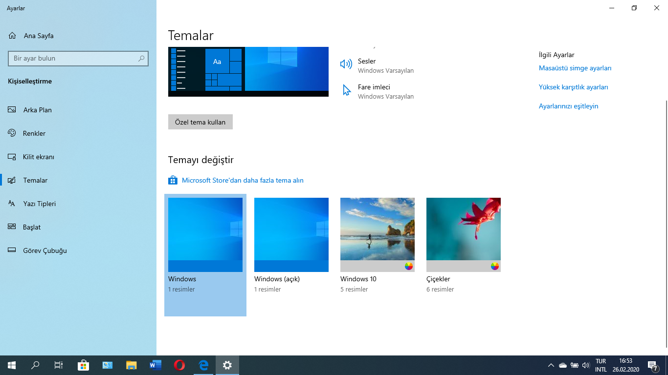 Ayarlar>Kişisel>Temalar kısmının ekran görüntüsünü iletmenizi rica ederim.