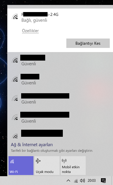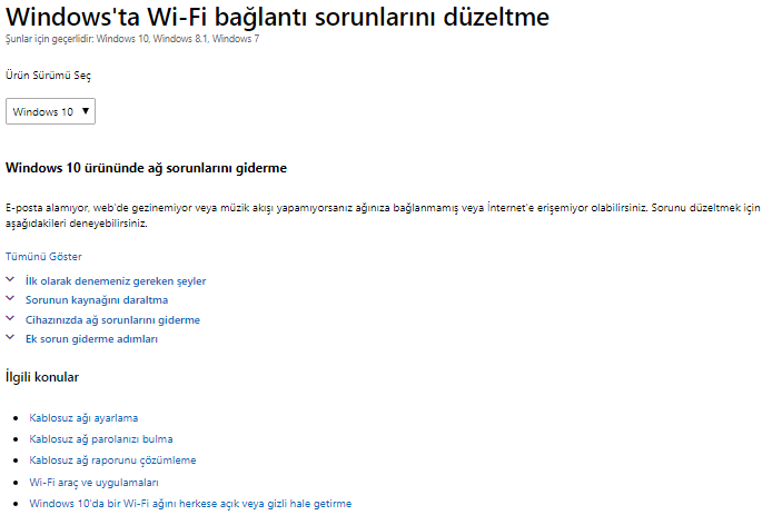 Bunlara ek olarak Windows 10'da Wi-Fi sorunlarını giderme makalesinde uygulamadığınız çözüm yöntemlerini sırası ile takip etmenizi rica ederim.