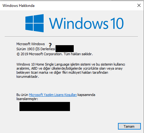 Windows versiyonunuz nedir? Başlat menüsüne winver yazarak bulabilirsiniz. Ekran görüntüsü iletmeden önce kişisel bilgilerinizi gizlemeyi unutmayınız. Ekran görüntüsü almak için bağlantıdan yararlanabilirsiniz.