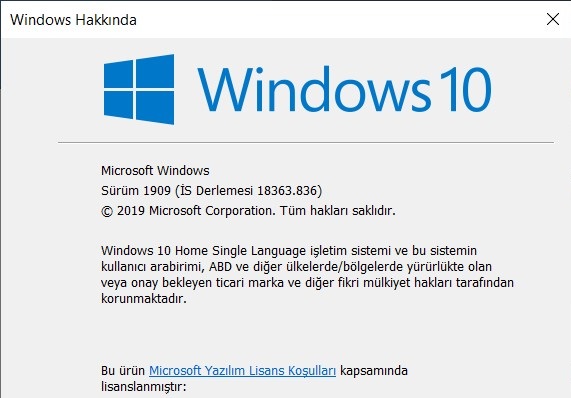 Sorununuz hala devam ediyor ise Windows versiyonu bilginizi bizimle paylaşmanızı rica ederim. Başlat menüsüne winver yazarak bulabilirsiniz. Ekran görüntüsü iletmeden önce kişisel bilgilerinizi gizlemeyi unutmayınız. Ekran görüntüsü almak için bağlantıdan yararlanabilirsiniz.