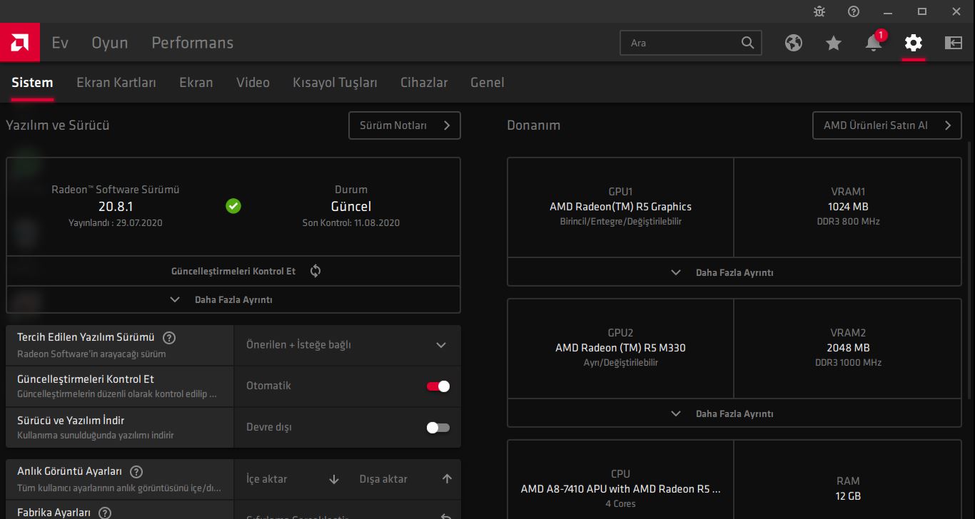 Bilgisiyarımda tüm windows update güncelleştimelerini yaptım ancak çok uzun süren araştırmalarım sonucu benim bilgisiyarımın aynısını kullanan kişilerde de aynı sorunun olduğunu anladım bilgisiyar harici ekran kartını kullanmama izin vermiyor ve oyunlarda istediğim fpsi alamıyorum 3 gb ekran kartı var bilgisiyar bunun sadece 1 gb olanını kullanıyor bilgisiyarın özelliklerini aşşağıya bırakacağım lütfen en yakın zamanda yardımcı olur musunuz ?