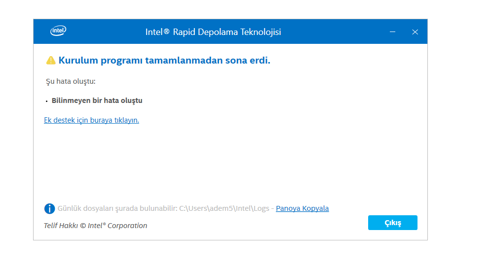 Son gelen windows 10 2004 ürün güncelleştirmesini yükledikten sonra intel rst programım hizmet vermiyor diye uyarı alıyordum. Daha sonra güncelleme yapmak için sorguladığımda son sürüm olduğu bilgisini aldım. Araştırmalarımda intel rst programını kaldırıp tekrar driver ile kurmam gerektiği hakkında bilgi okudum. Ancak intel rst programını uygulamalar kısmından kaldırdım. Daha sonra driver indirip kurmaya çalıştığımda hata aldım. Ben de son windows 10 2004 ürün güncelleştirmesini geri alıp bir önceki sürüme döndüm. Ancak hala driver çalıştırıp intel rst hizmetini tekrardan kullanamıyorum. Driver çalıştırıp kurmaya çalıştığımda hata alıyorum.