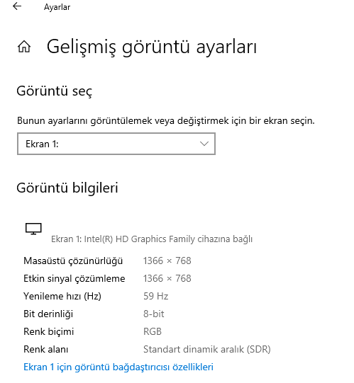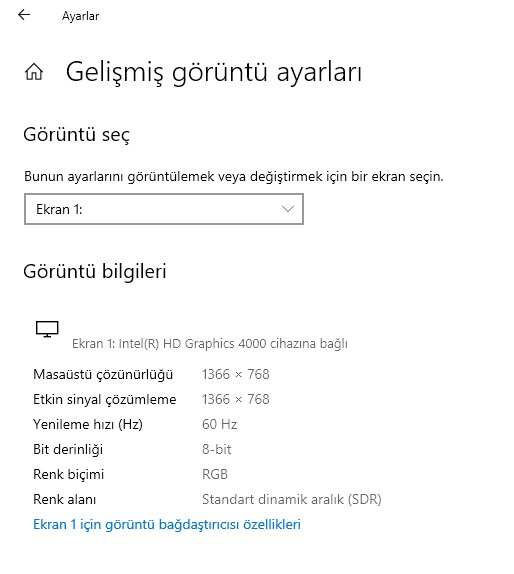 · Başlat > Ayarlar > Sistem> Monitör'ü seçiniz.