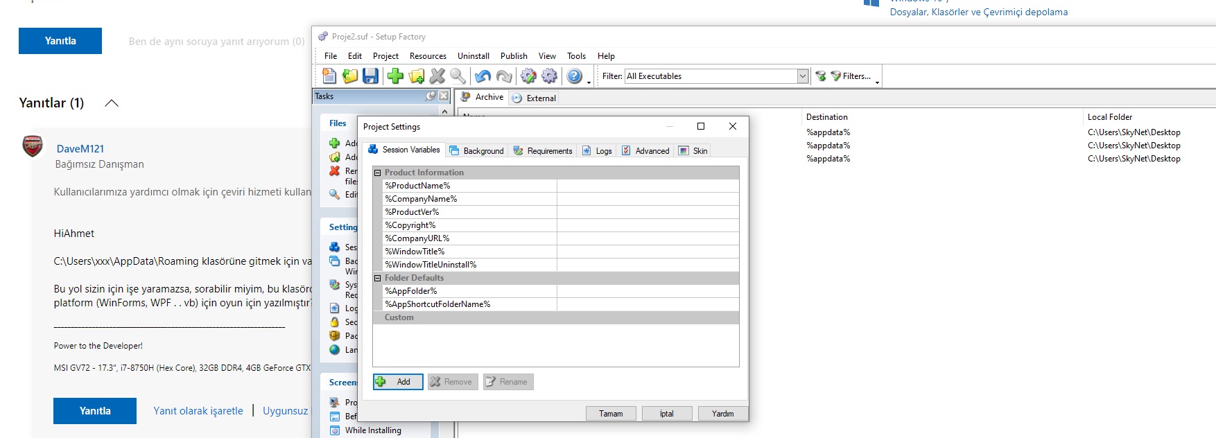 C:\Users\xxx\AppData\Roaming klasörüne gitmek için varsayılan yol, kullanıcı adı ne olursa olsun sadece %%appdata%