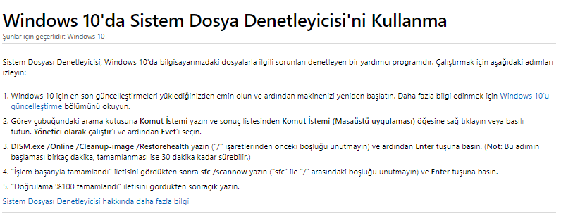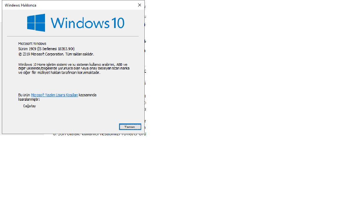 Windows versiyonunuz nedir? Başlat menüsüne winver yazarak bulabilirsiniz. Ekran görüntüsü iletmeden önce kişisel bilgilerinizi gizlemeyi unutmayınız. Ekran görüntüsü almak için bağlantıdan yararlanabilirsiniz.