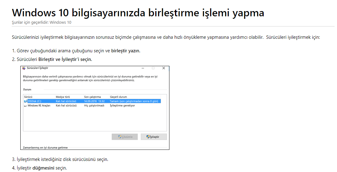 Daha sonra lütfen bağlantıdaki adımlardan faydalanarak Windows 10 bilgisayarınızda disk birleştirme işlemi yapınız.
