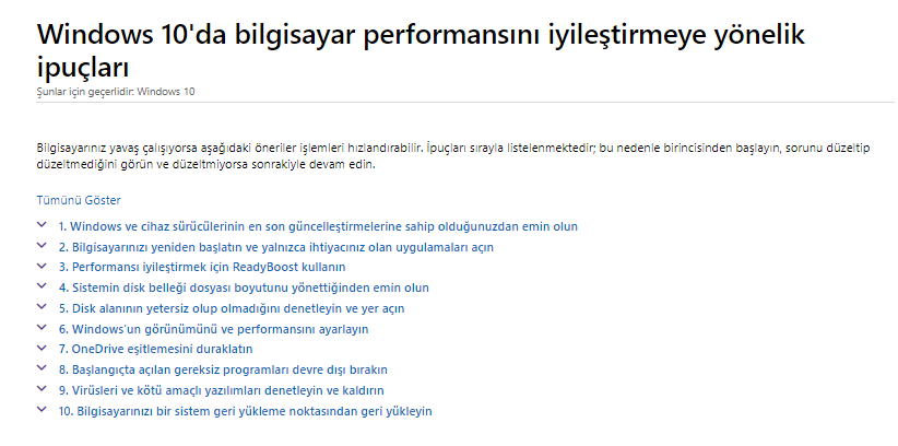 Bilgisayarınızın performansını genel olarak iyileştirmeye yönelik ipuçları içinse, bağlantıdaki adımlardan gerekli gördüklerinizi uygulayabilirsiniz.