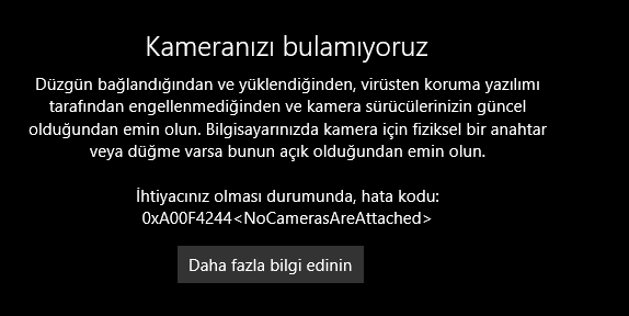 Window 10 işletim sistemli cihazımda kamerayı açmaya çalıştığımda kameranızı bulamıyoruz sorunuyla karşılaşıyorum.
