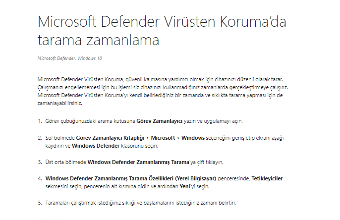 Windows Defender taramalarını farklı bir zamana ayarlayarak bu kullanımı düşürebilirsiniz, bunun için Windows Defender Virüsten Koruma'da tarama zamanlamamakalemizdeki adımları uygulayabilirsiniz.