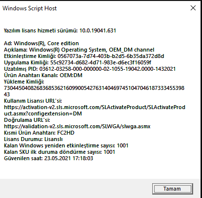 Aynı Windows 10 sürümünü yüklediğinizden emin olun (Home, Pro . . . . vb.) Etkinleştirme sorunlarını önlemek için daha önce yüklemiştiniz