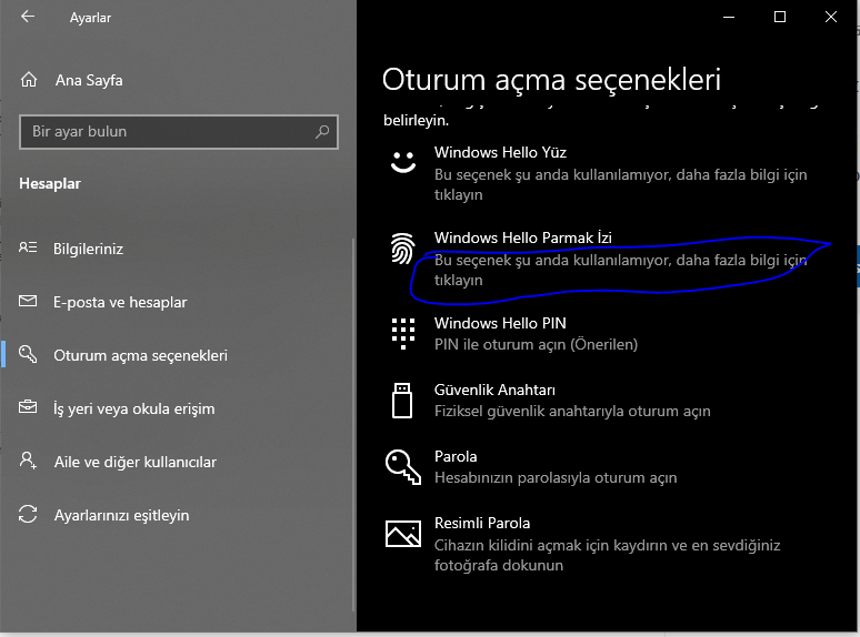 Bilgisayarımın parmak izi okuyucusu çalısmıyor.