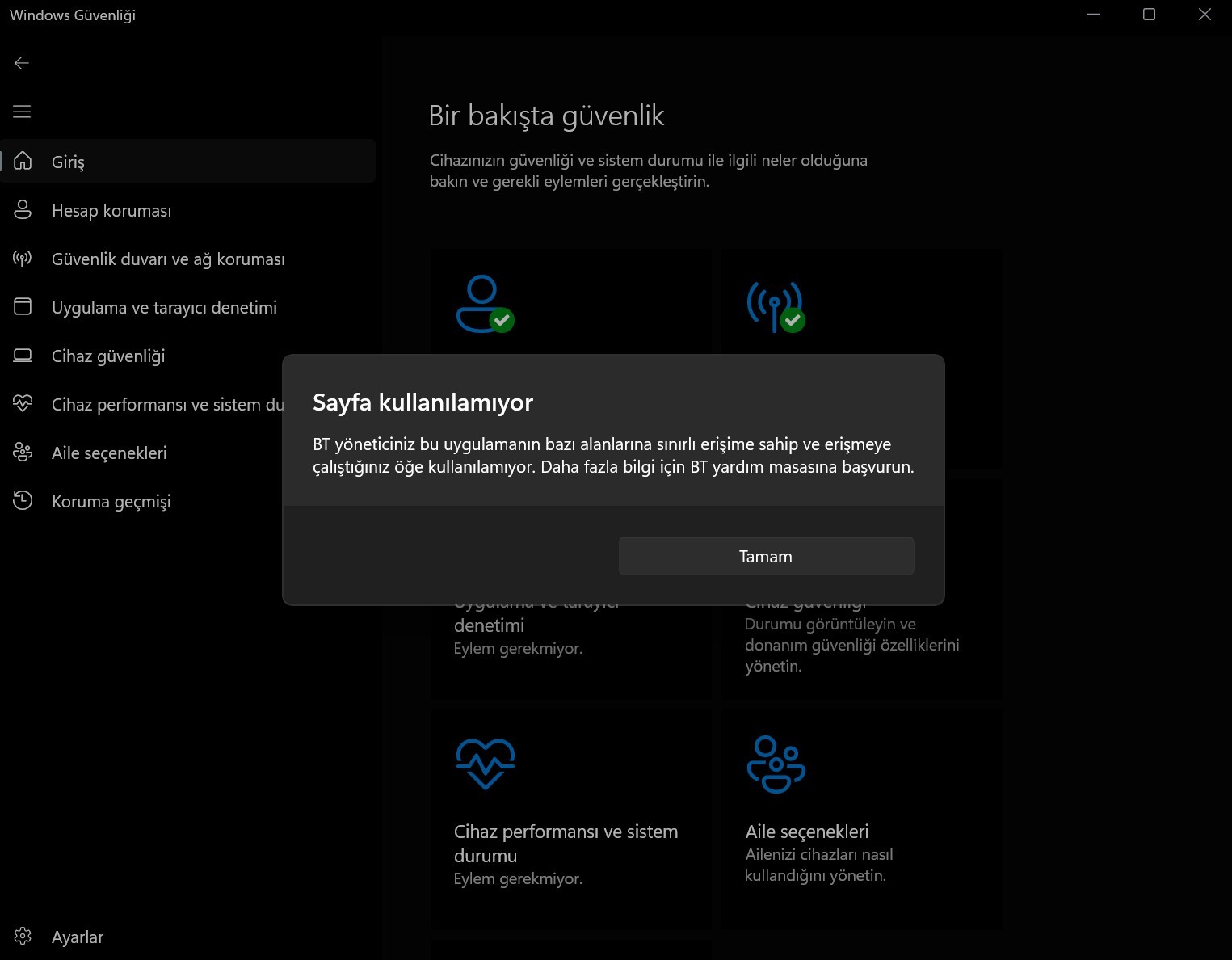 Daha sonra Windows Güvenlik sayfasının çalışıp çalışmadığını kontrol edin.