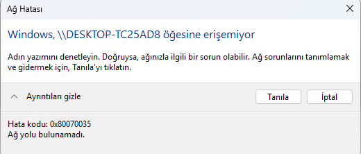 Hangi cihaza erişmeye çalışıyorsunuz? Başka bir bilgisayardaki bir ağ yolu mu? Bir ağ NAS'ı mı?