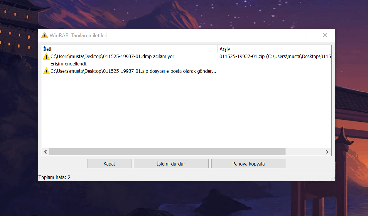 Oyun oynarken bu hatayı aldım