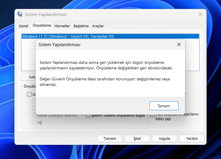 Bu hata, Windows'un UEFI Modunda yüklendiğini ve BIOS'unuzda Güvenli Önyükleme etkinleştirildiğinde Msconfig yardımcı programında herhangi bir değişiklik yapamayacağınızı gösterir.