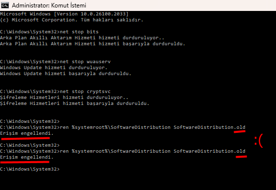 Komut satırını kullanarak güncelleme dosyalarını silme