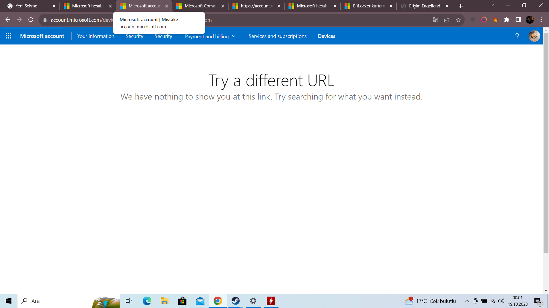 Screenshot bu şekilde ve şifrelerim buradaydı ama bu hata ile karşılaşıyorum