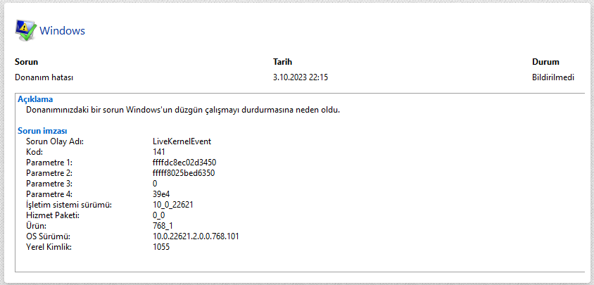 Kernel-Power 41 olayları var. Güç düğmesini basılı tutarak bilgisayarınızı zorla kapattınız mı? Değilse, bu hata çoğunlukla güç kaynağındaki sorun anlamına gelir. Kontrol için güç kaynağı ünitesini değiştirebilir misiniz? BIOS veya anakartta da güç yönetimi ile ilgili sorunlar anlamına gelebilir.